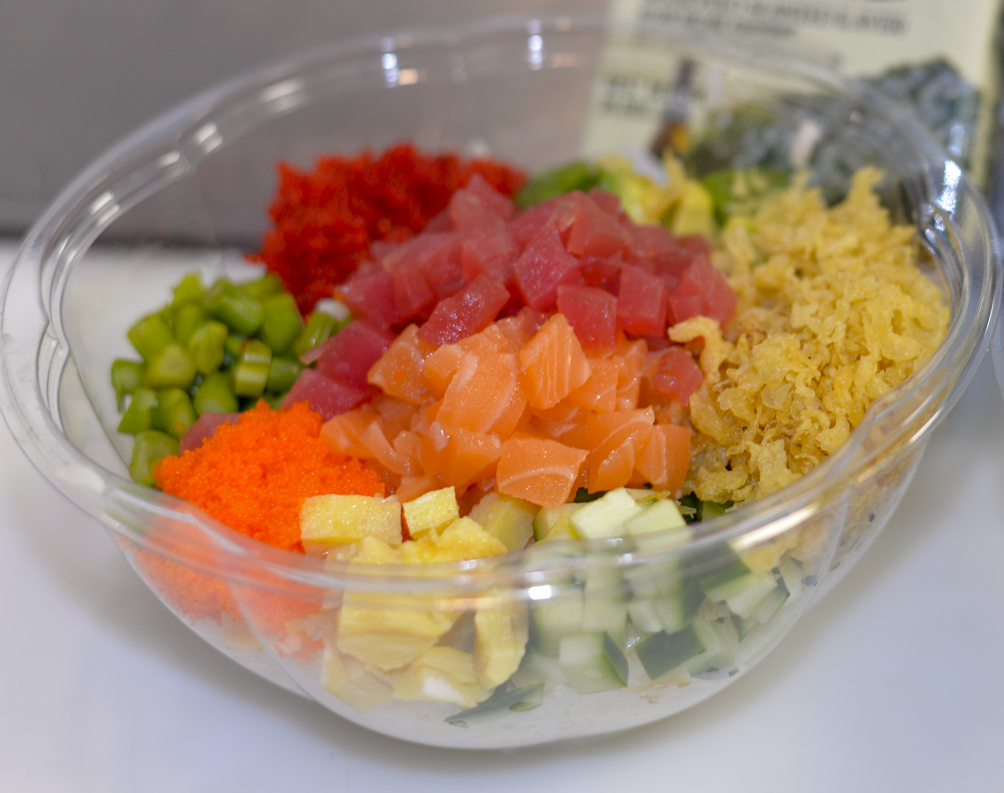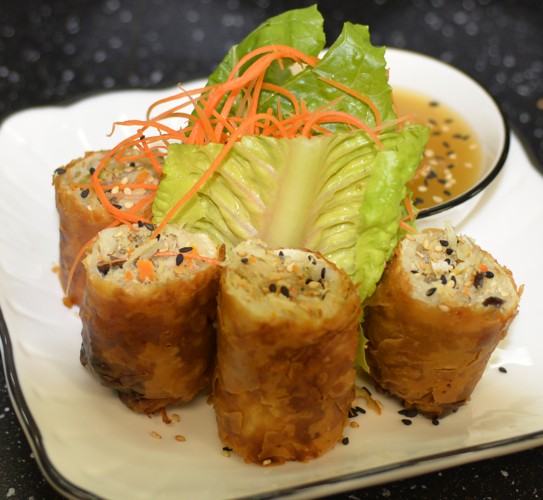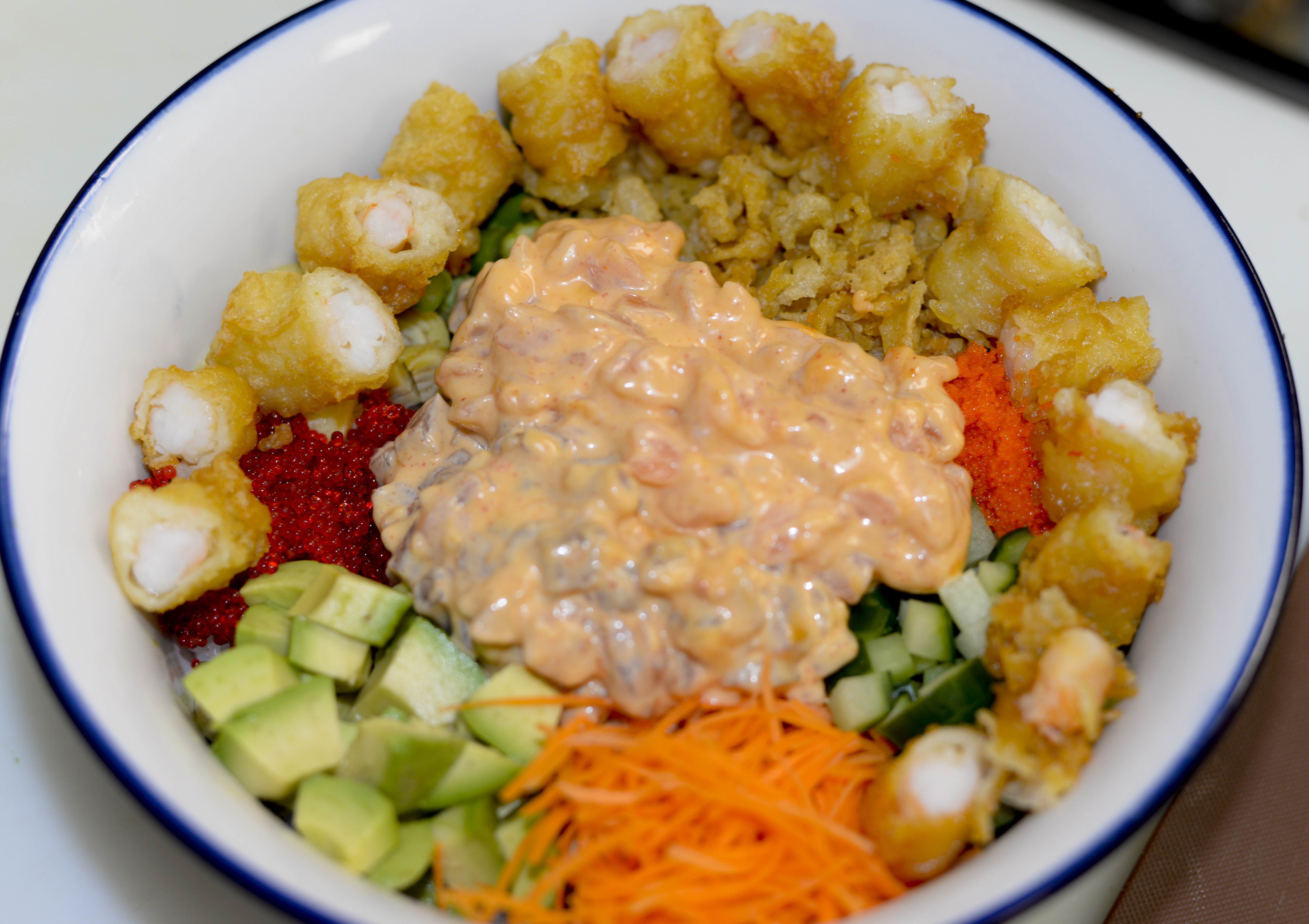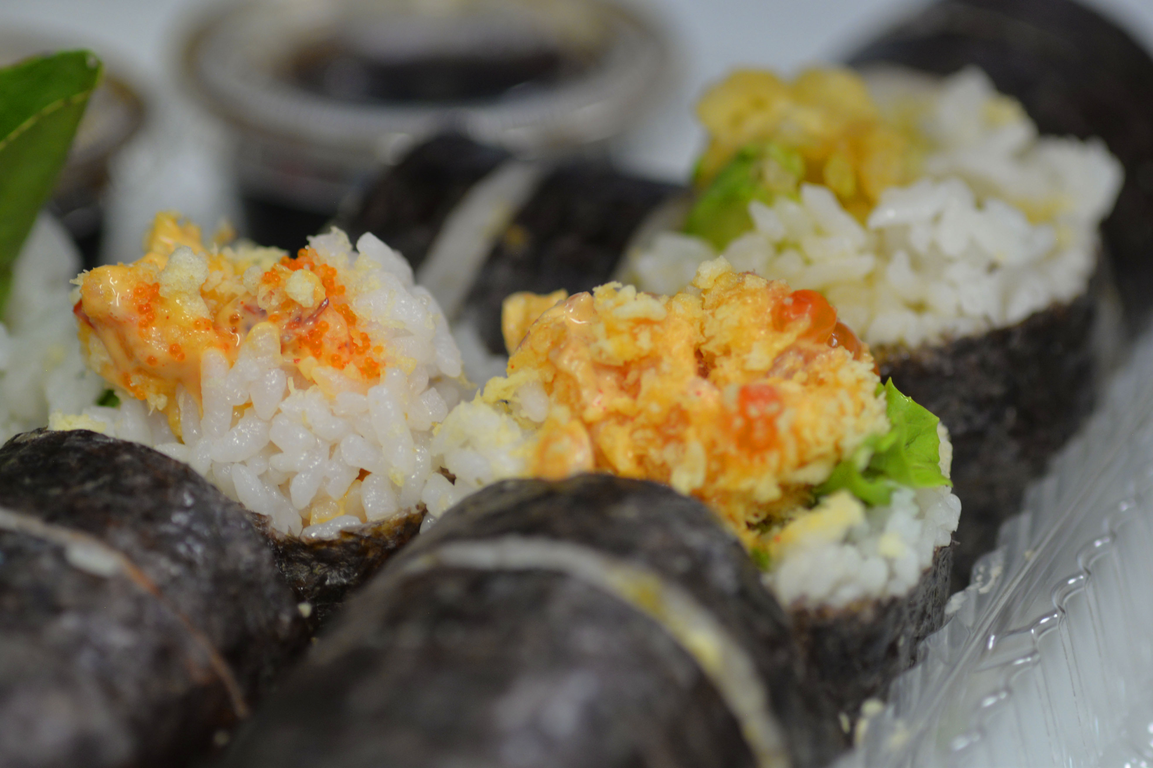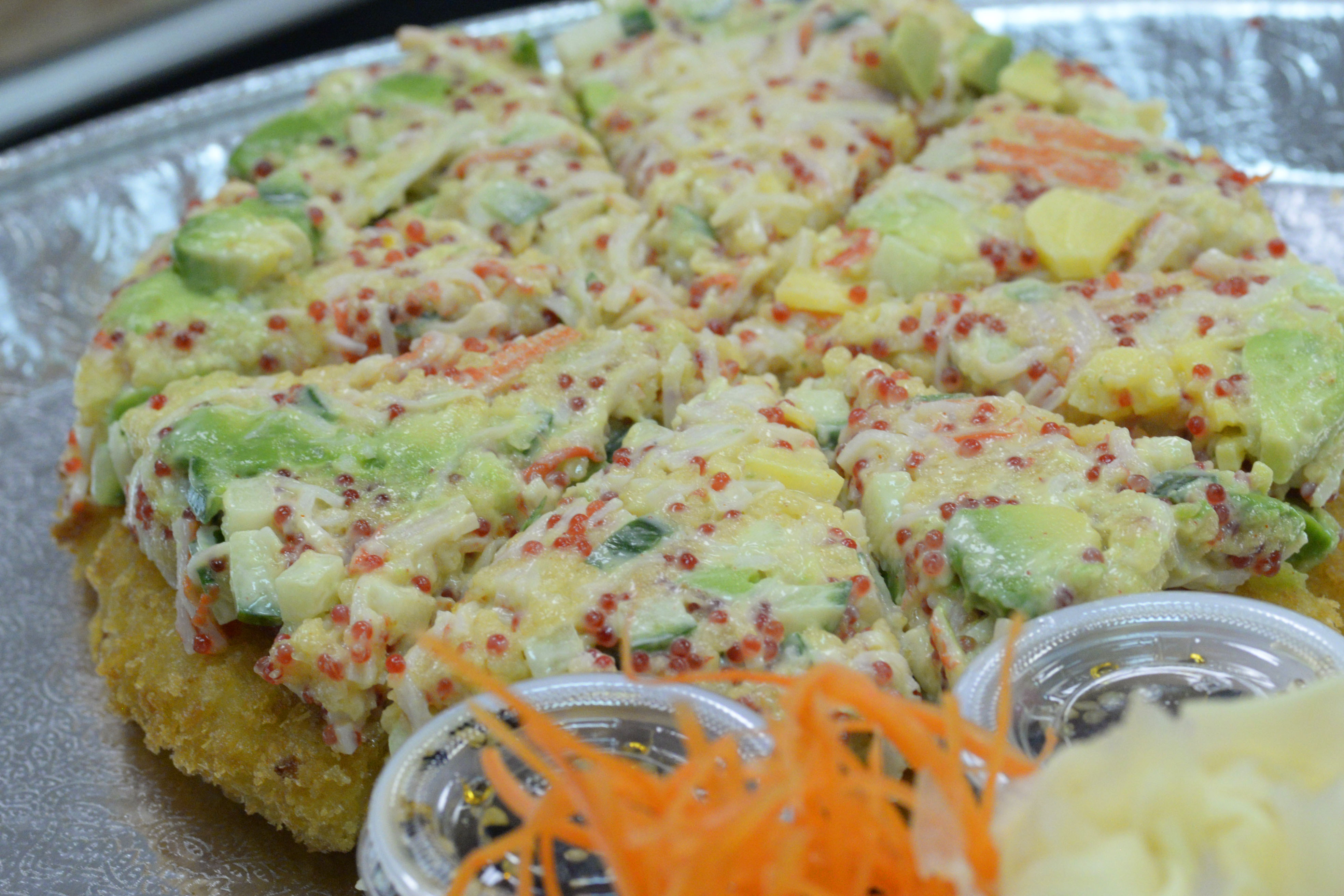 Avocado, asparagus, cucumber, carrot, caviar, tempura, sushi rice, house sauce, sesame & spicy mayo.