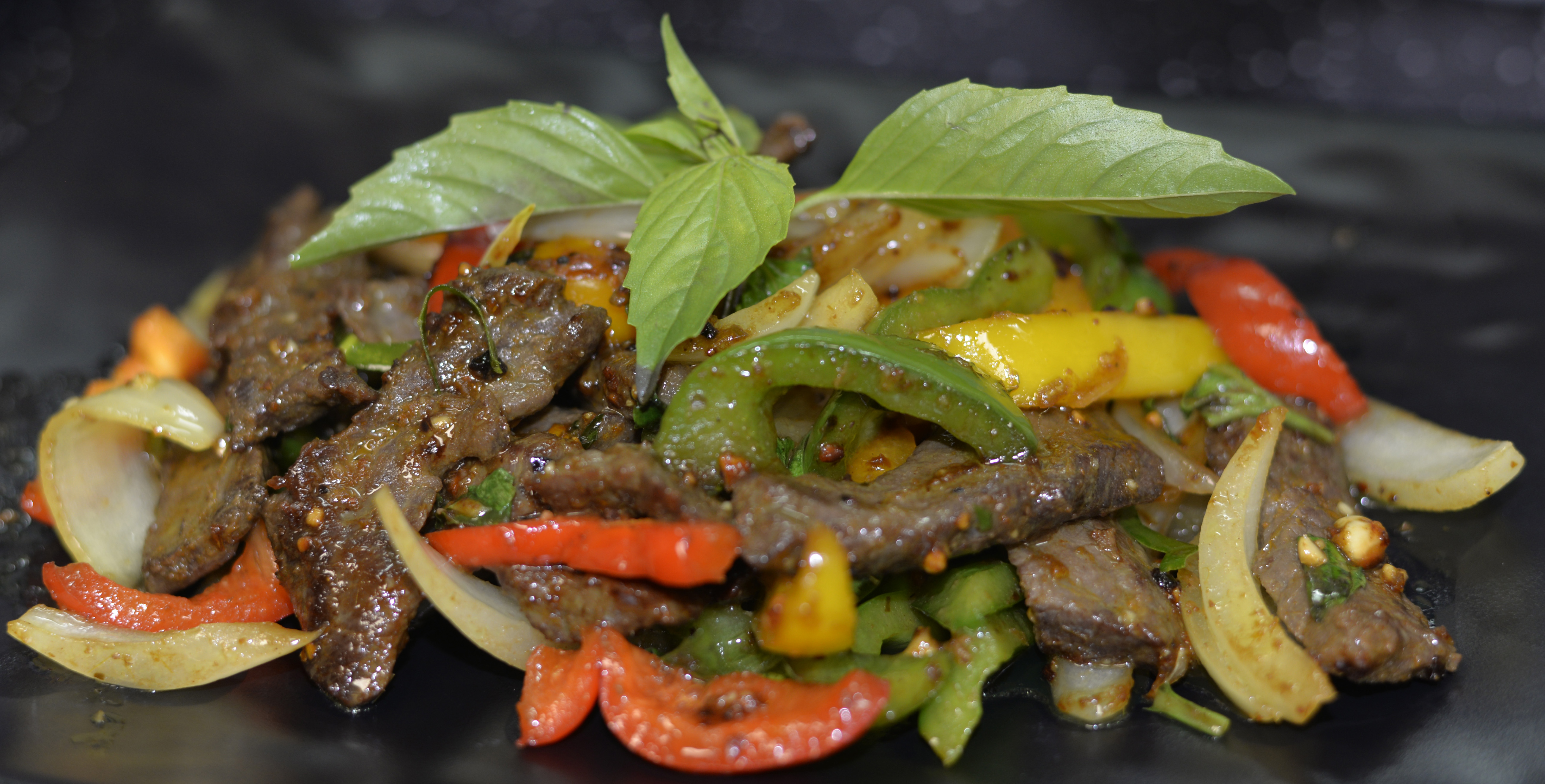 Sauteed peppers, onions, kru-eugn & peanuts served with rice or vermicelli