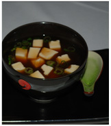 Curry soup, coconut milk, rice vermicelli, lemon zest & onions